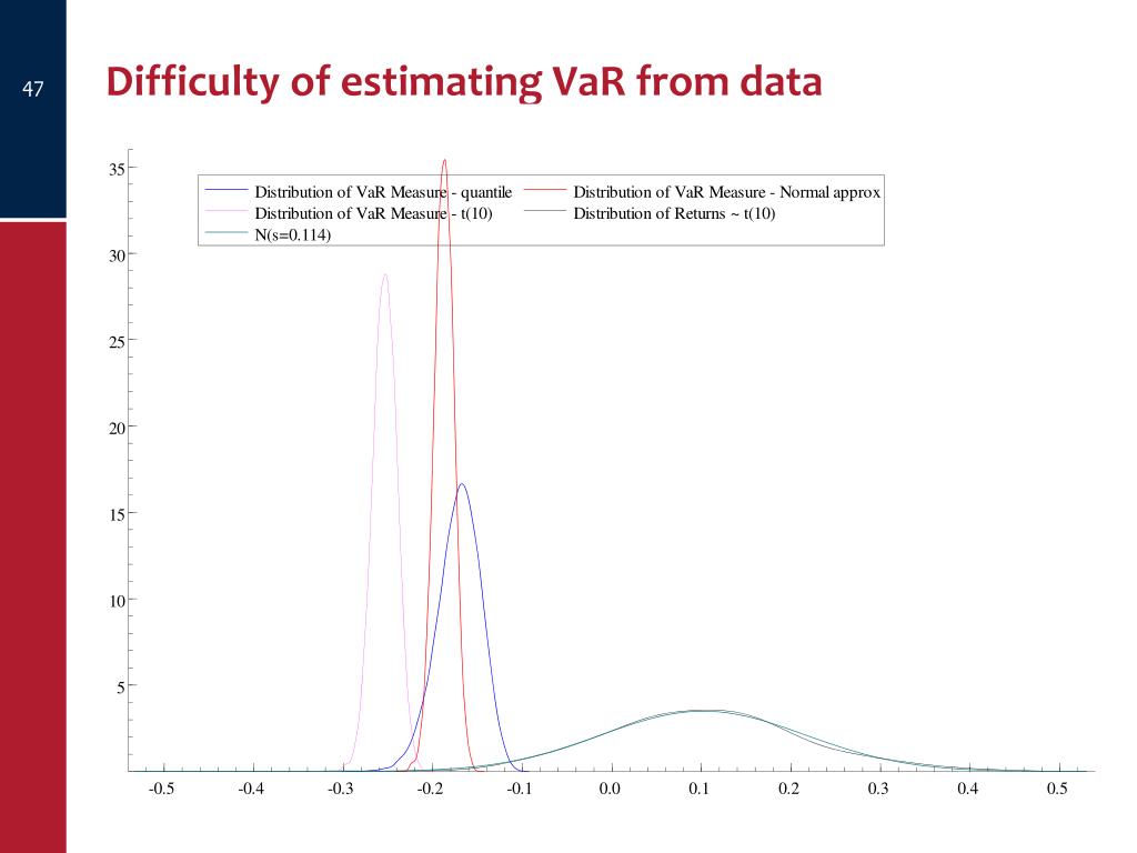 Measuring risk – Value at Risk (VaR) Obvious measure of risk is variance (or standard deviation). But that is a general measure – we want to deal with downside risk (when things go wrong).
