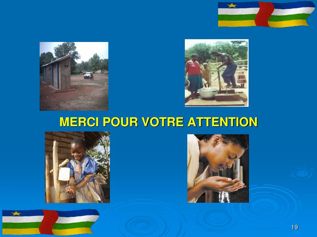 REPUBLIQUE CENTRAFRICAINEUnité – Dignité – Travail PRESENTATION DU SECTEUR DE L’EAU ET DE L’ASSAINISSEMENT Novembre 2011 ******* Par Vincent Juvence ANDJIDOULOU, Directeur des Ressources en Eau, Coordonateur du Secrétariat Technique Permanent du Sectoriel Eau et Assainissement à la Direction Générale de l’Hydraulique