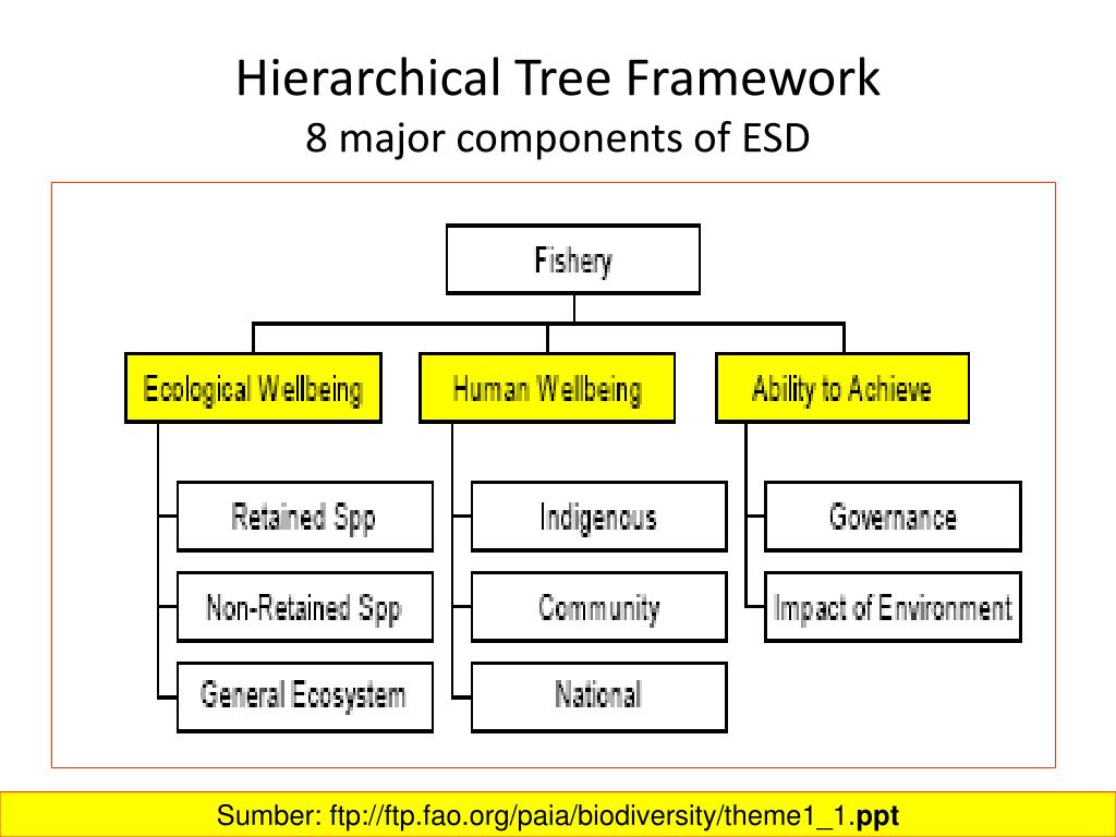 Hierarchical Tree Framework8 major components of ESD Sumber: ftp://ftp.fao.org/paia/biodiversity/theme1_1.ppt