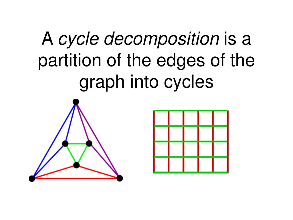 A cycle decomposition is a partition of the edges of the graph into cycles