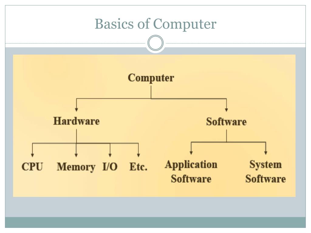 What does a Computer Do? • Computers can perform four general operations, which comprise the information processing cycle. • Input • Keyboard, Mouse, Scanner, Network/Internet, Cell phones etc • Process • Software • Output • Monitor, Printer etc • Storage • RAM, Hard disk, Floppy Disk, CD/DVD, Flash Disk etc
