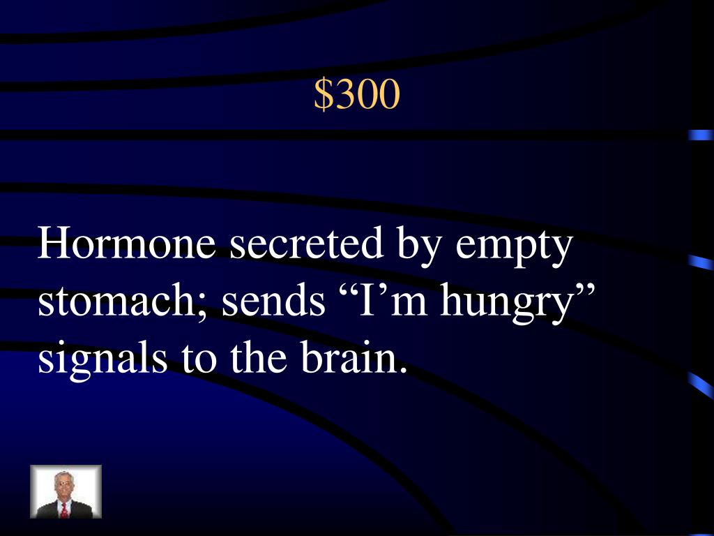 $300 Hormone secreted by empty stomach; sends “I’m hungry” signals to the brain.