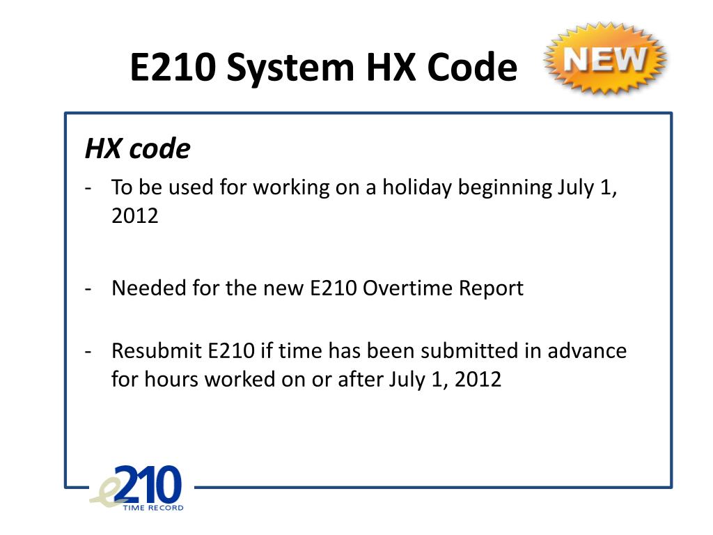 Introducing…Effective July 1, 2012 • The new HX code in E210 (use for working on a holiday) • The newE210 Overtime Report