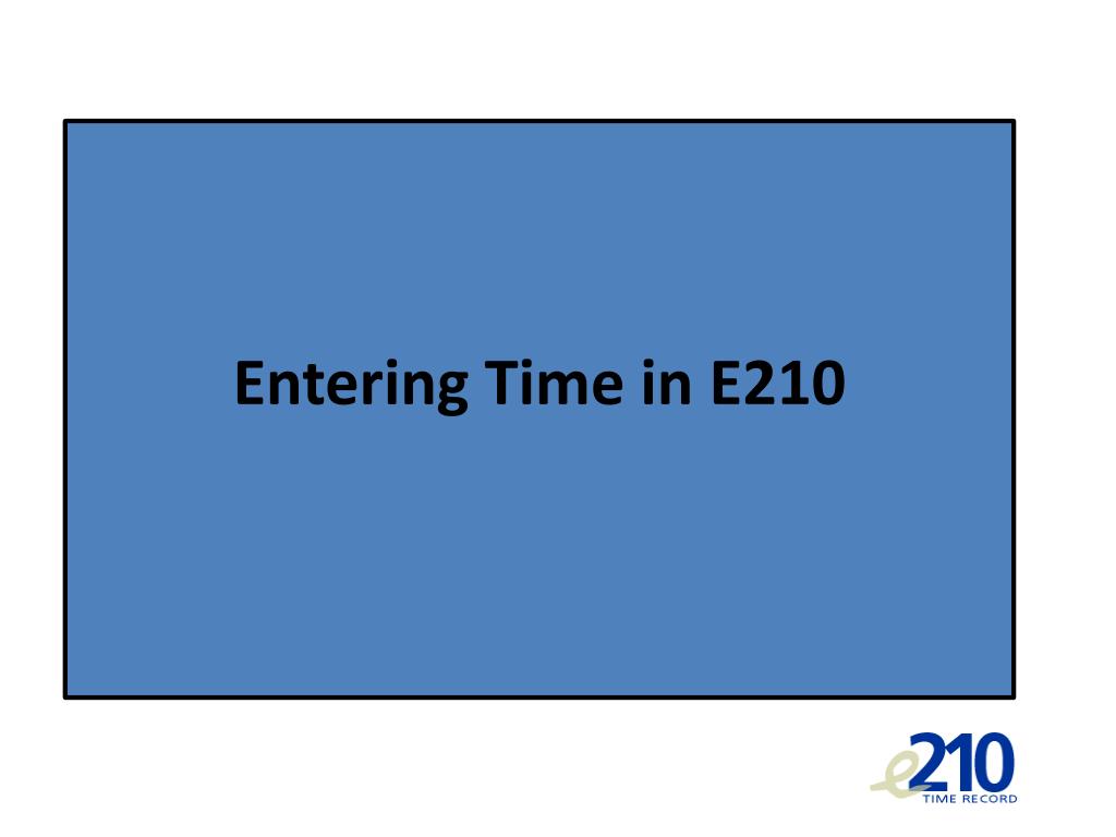 Entering Time in E210 Problems with time entries • Incomplete and inaccurate time records • Late submission, review, and approval of E210 • Incorrectly recording time off used in lieu of pay • Leave or the combination of leave and time worked exceed the number of hours normally scheduled on that day.