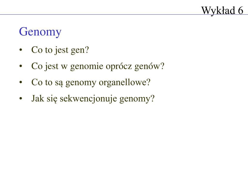 Wykład 6 • Genomy • Co to jest gen? • Co jest w genomie oprócz genów? • Co to są genomy organellowe? • Jak się sekwencjonuje genomy?
