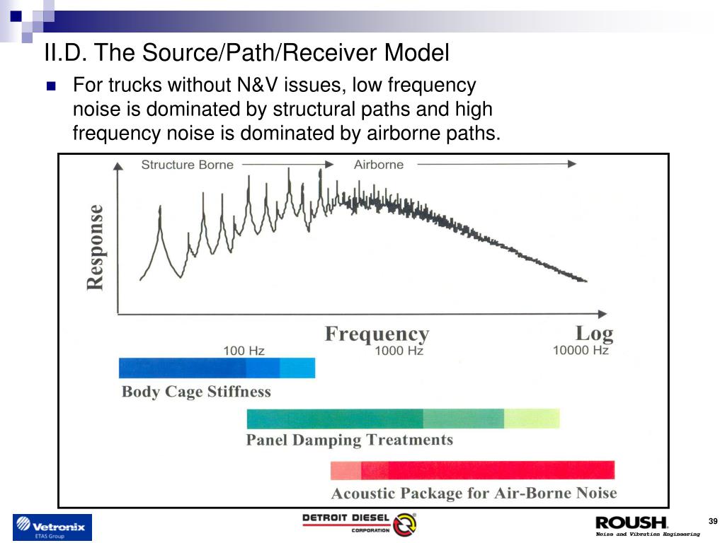 II.D. The Source/Path/Receiver Model • For trucks without N&V issues, low frequency noise is dominated by structural paths and high frequency noise is dominated by airborne paths.
