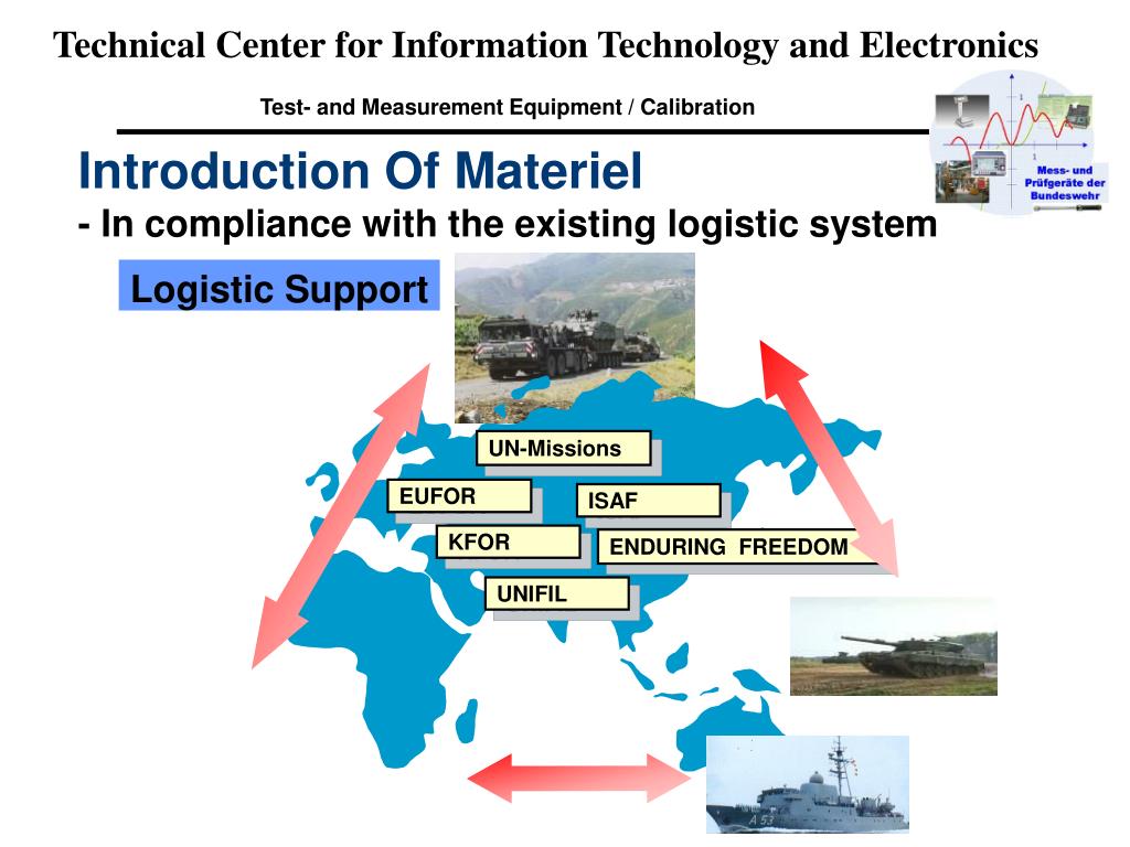 Logistic Support UN-Missions EUFOR ISAF KFOR ENDURING FREEDOM UNIFIL IntroductionOfMateriel - In compliance with the existing logistic system