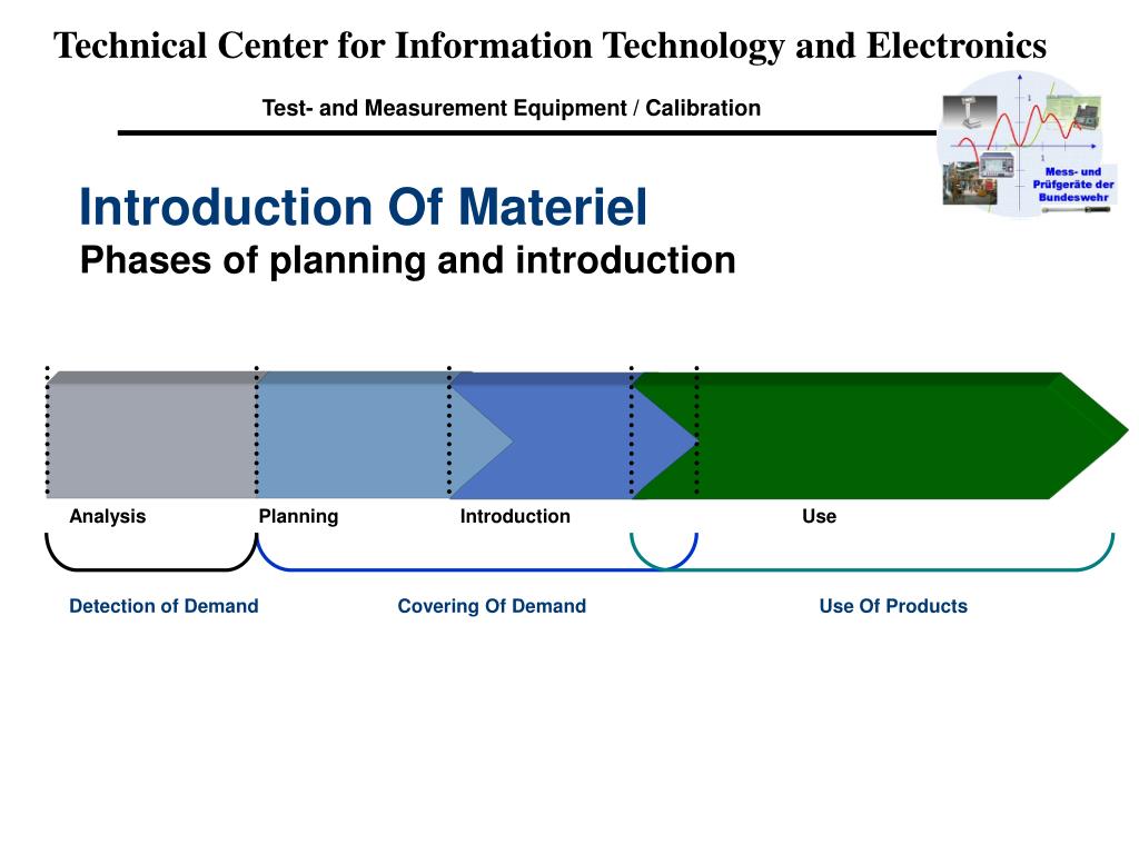 Analysis Planning Introduction Use Detection of Demand Covering Of Demand Use Of Products • IntroductionOfMaterielPhases of planning and introduction