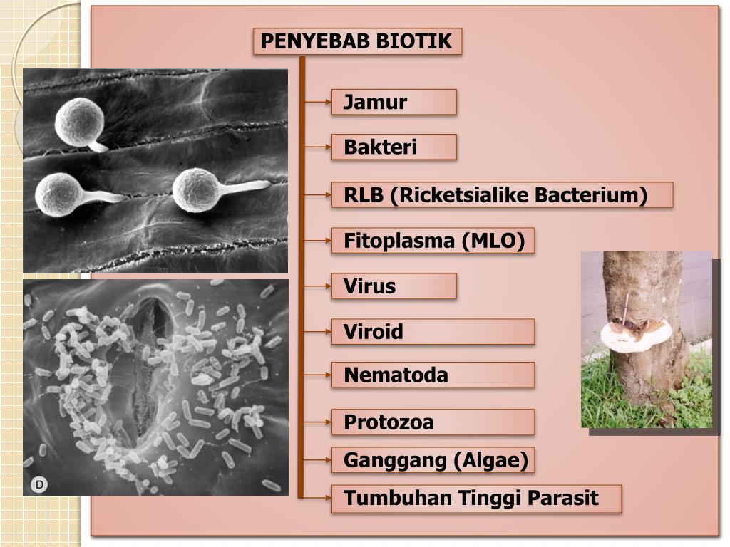 PENYEBAB PENYAKIT TUMBUHAN. Prof. Dr. Ir. Abdul Latief Abadi, MS Dosen Jur. HPT FP UB 2008. Gambaran gejala penyakit dan proses fisiologi tumbuhan menurut Agrios, 2005. PENYEBAB BIOTIK. Jamur. Bakteri. RLB ( Ricketsialike Bacterium). Fitoplasma (MLO). Virus. Viroid. Nematoda.