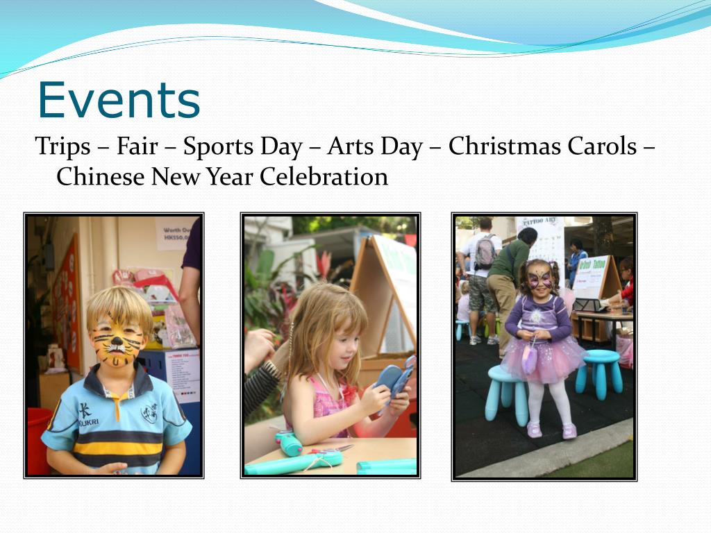 Events Trips – Fair – Sports Day – Arts Day – Christmas Carols – Chinese New Year Celebration