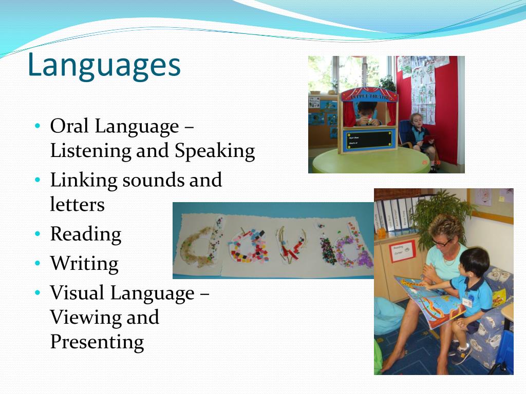 Languages • Oral Language – Listening and Speaking • Linking sounds and letters • Reading • Writing • Visual Language – Viewing and Presenting