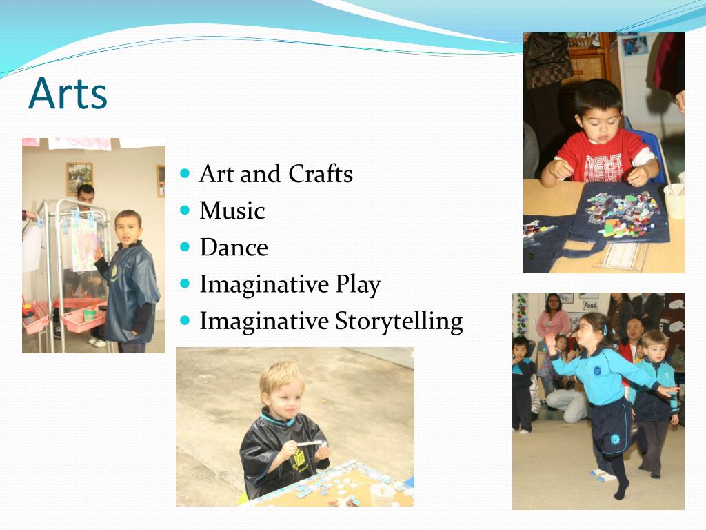 Arts • Art and Crafts • Music • Dance • Imaginative Play • Imaginative Storytelling