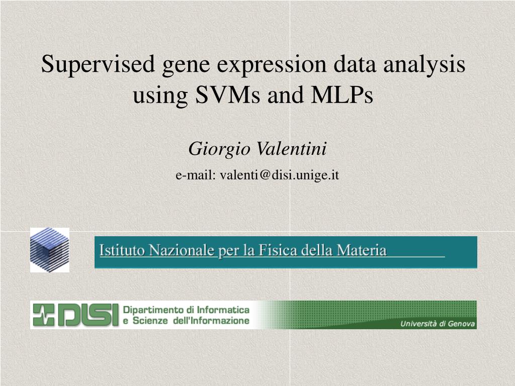 Supervised gene expression data analysis using SVMs and MLPs e-mail: valenti@disi.unige.it Giorgio Valentini