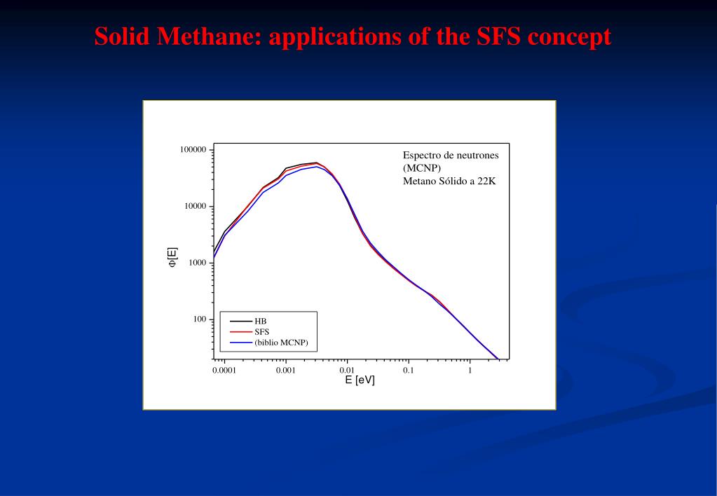 Solid Methane: using SFS • Neutron spectra at different temps calculated with MCNP using SFS´based libraries.