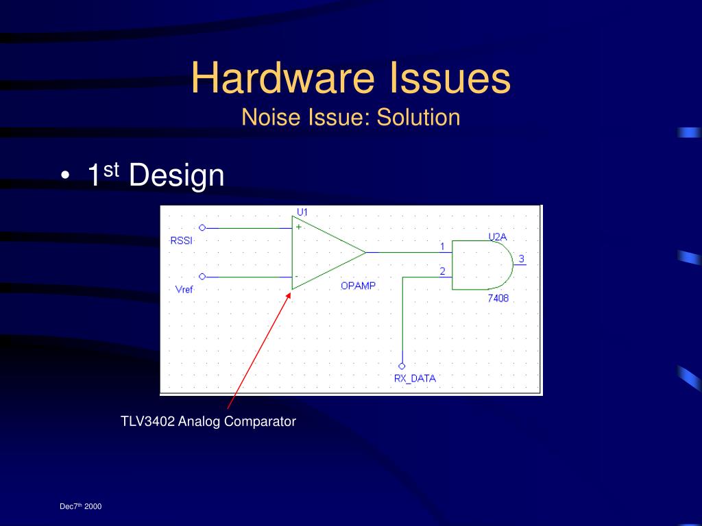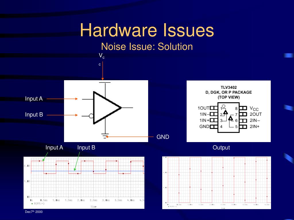 Hardware IssuesNoise Issue: Solution • 1st Design TLV3402 Analog Comparator
