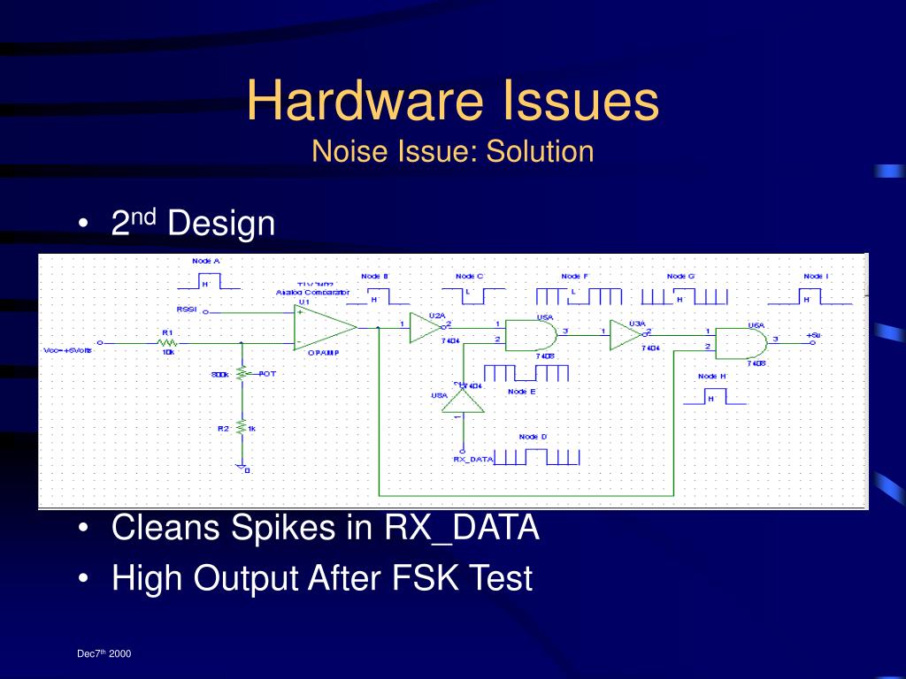 Hardware IssuesNoise Issue: Solution • 2nd Design • Cleans Spikes in RX_DATA • High Output After FSK Test