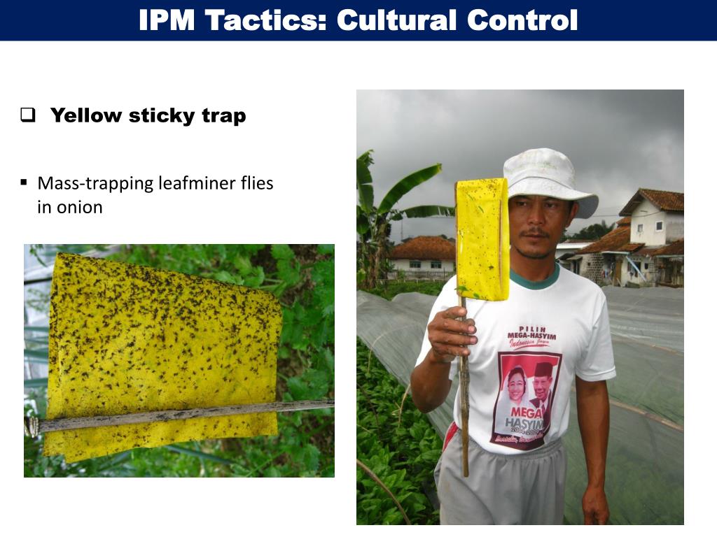 IPM Tactics: Cultural Control • Yellow sticky trap • Mass-trapping leafminer flies • in onion