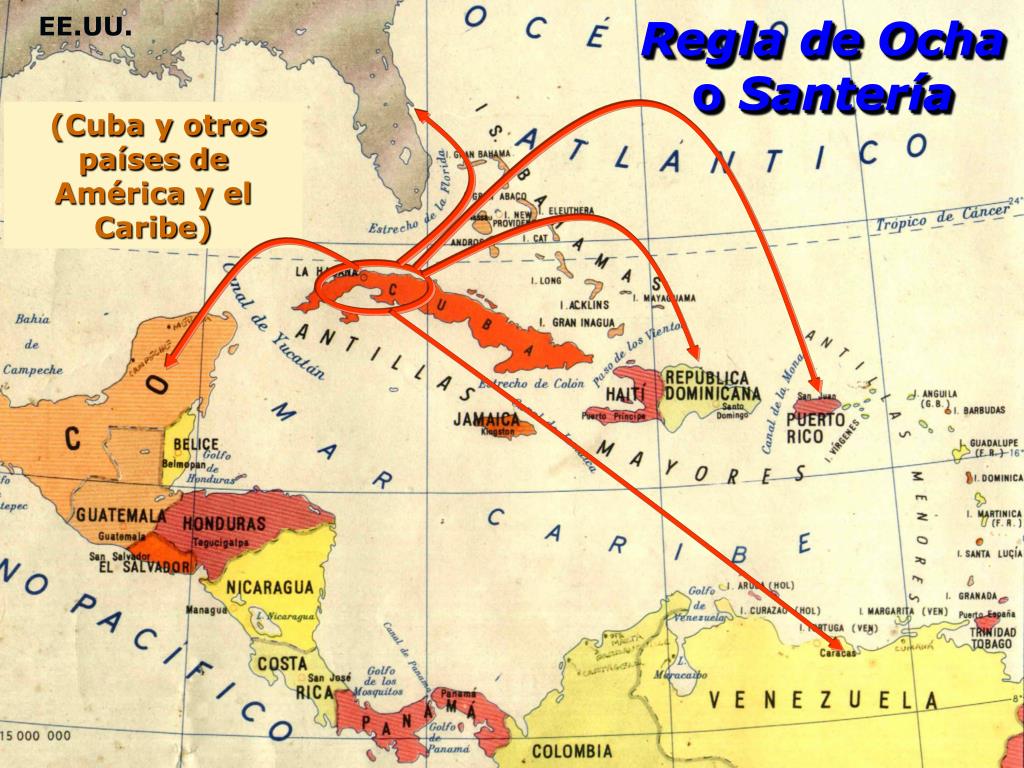 RELIGIONES AFROAMERICANAS. En América Latina y el Caribe. Proyecto cartográfico. EE.UU. Regla de Ocha o Santería. (Cuba y otros países de América y el Caribe). EE.UU. Culto a Ifá o Ifaísm o. ( Cuba, Puerto Rico, República Dominicana, México, Venezuela y otros países de América).