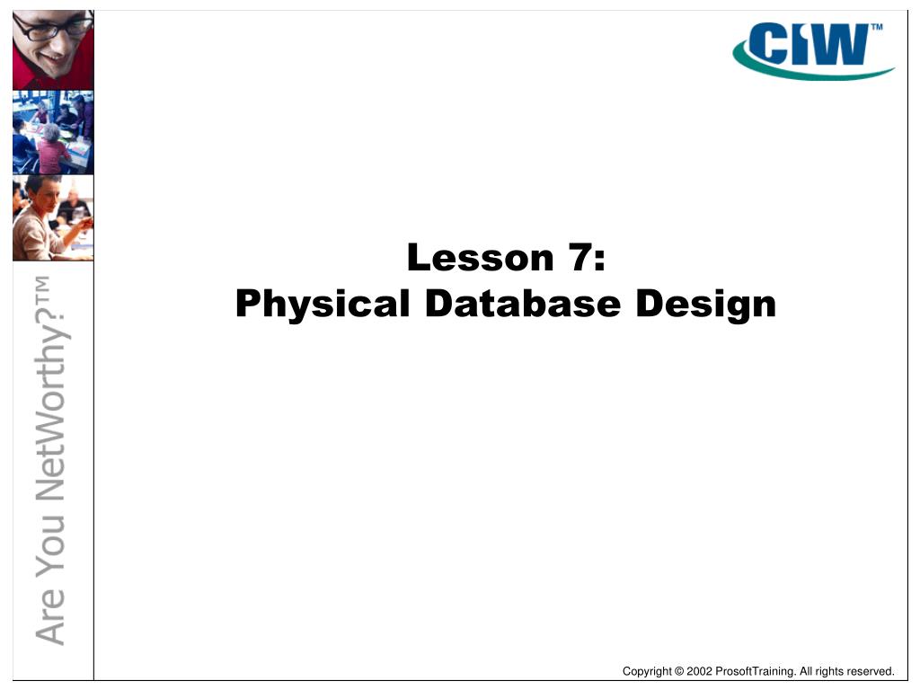 Summary • Identify logical database design issues • Identify the cardinality of data relationships • Create a logical data model from a conceptual data model • Use a database definition language • Define integrity constraints • Create and validate an enterprise data model