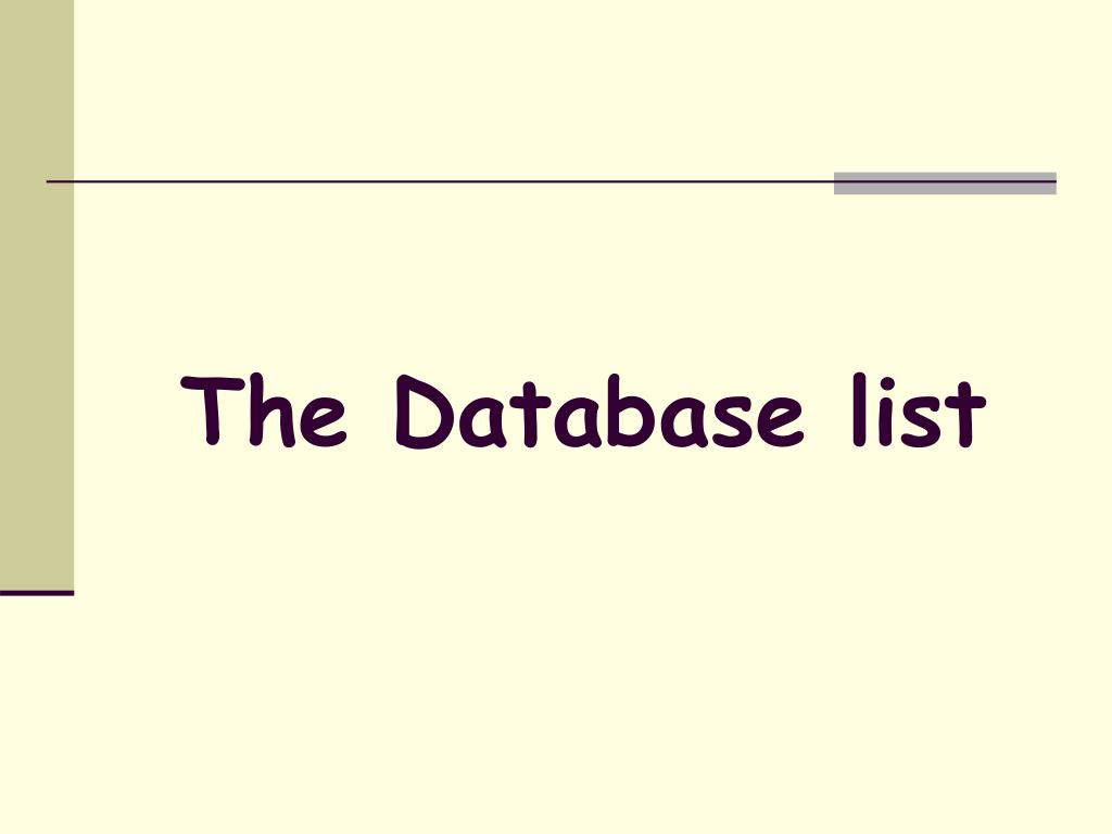 Database—Displays the name of the database. Click to search in just one database. The Database list