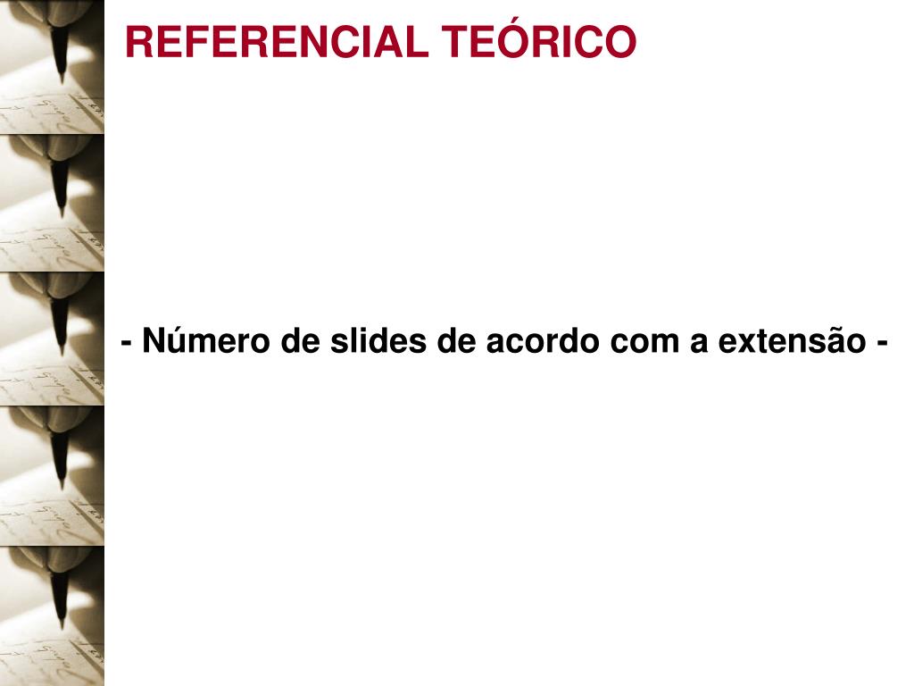 REFERENCIAL TEÓRICO - Número de slides de acordo com a extensão -