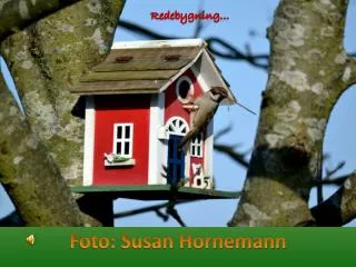 Redebygning …. Foto: Susan Hornemann. Titter til hinanden…. Rækkehuse…. Spurvehøg sidder på lur, efter småfugle. Flagspætten. Flagspætten sunder sig, efter at have ramt vinduet. Han er også velkommen. Foto: Susan Hornemann -titter til hinanden. Der er altid plads til en til….