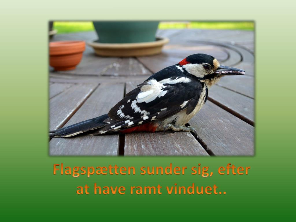 Flagspætten sunder sig, efter at have ramt vinduet..