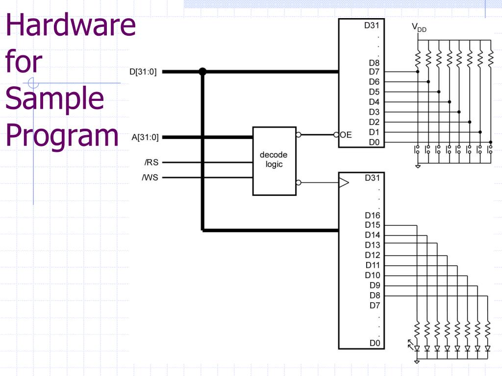 Disassembly Window 0x00080000 E59FF018 DD 0xE59FF018 0x00080004 E59F0018 LDR R0,[PC,#0x0018] 0x00080008 E5901000 LDR R1,[R0] 0x0008000C E1A01401 MOV R1,R1,LSL #8 0x00080010 E1E01001 MVN R1,R1 0x00080014 E5801000 STR R1,[R0] 0x00080018 E1A00000 NOP 0x0008001C EAFFFFF8 B 0x00080004 0x00080020 00080004 DD 0x00080004 0x00080024 80001000 ANDHI R1,R0,R0 0x00080028 00000000 ANDEQ R0,R0,R0 0x0008002C 00000000 ANDEQ R0,R0,R0 0x00080030 00000000 ANDEQ R0,R0,R0 0x00080034 00000000 ANDEQ R0,R0,R0 aLoop aPort B/BL{<cond>} <target_address> RTL: PC PC + (signed_immediate_24 << 2)