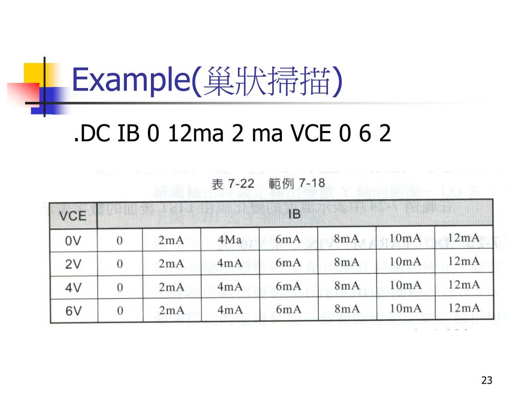 Example(巢狀掃描) .DC IB 0 12ma 2 ma VCE 0 6 2