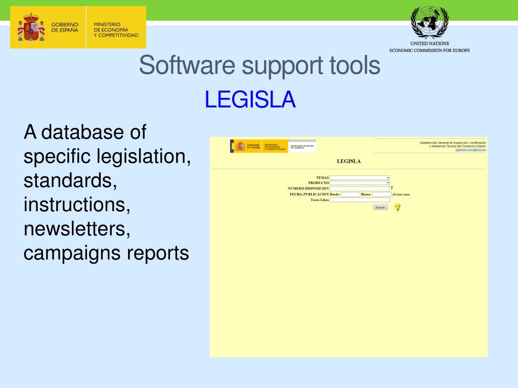 Software support tools LEGISLA A database of specific legislation, standards, instructions, newsletters, campaigns reports