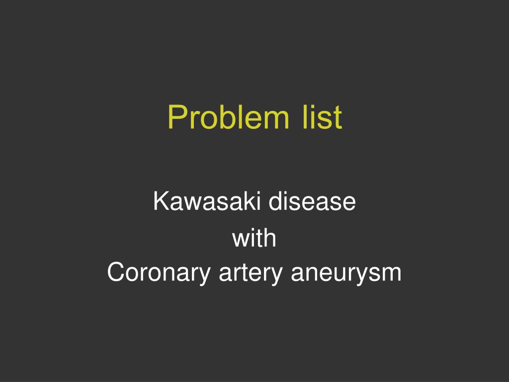 Problem list Kawasaki disease with Coronary artery aneurysm