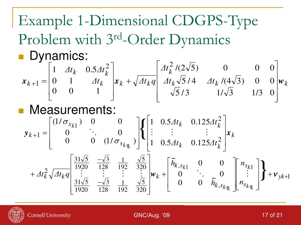 Example 1-Dimensional CDGPS-Type Problem with 3rd-Order Dynamics • Dynamics: • Measurements: GNC/Aug. ‘09