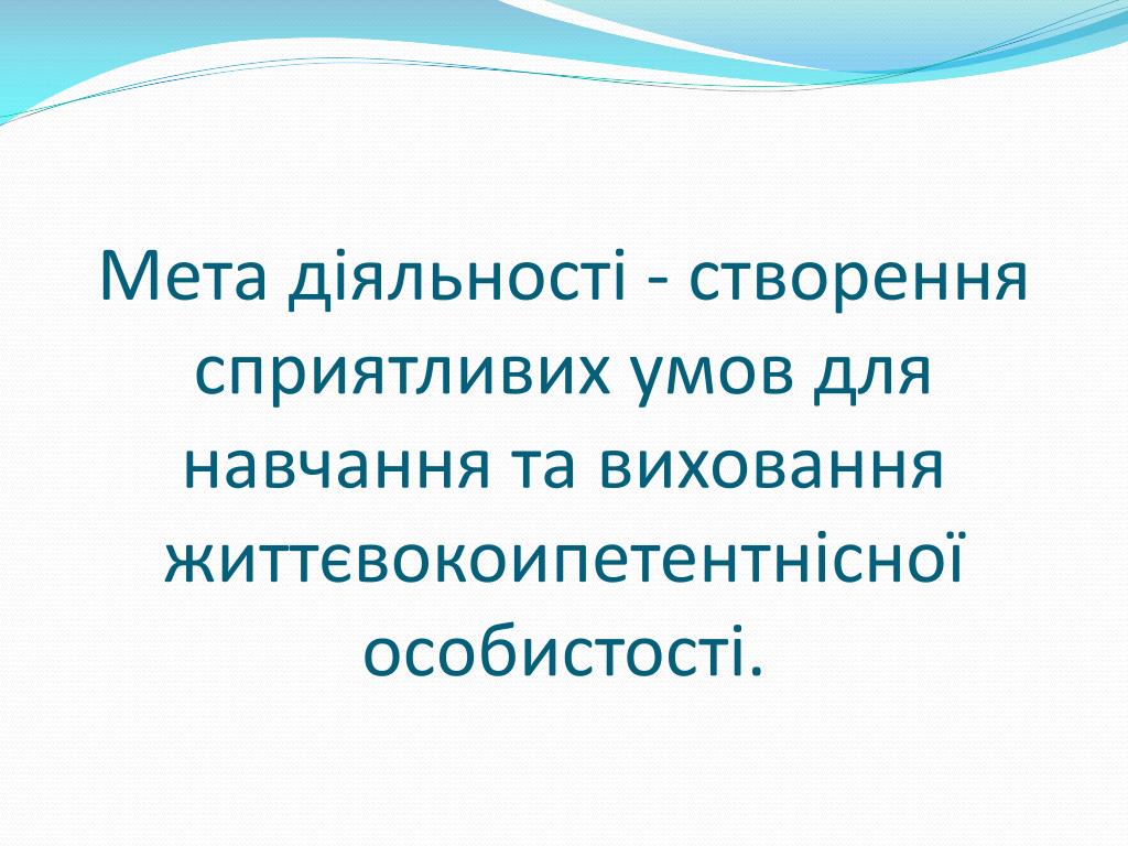 Мета діяльності - створення сприятливих умов для навчання та виховання життєвокоипетентнісної особистості.