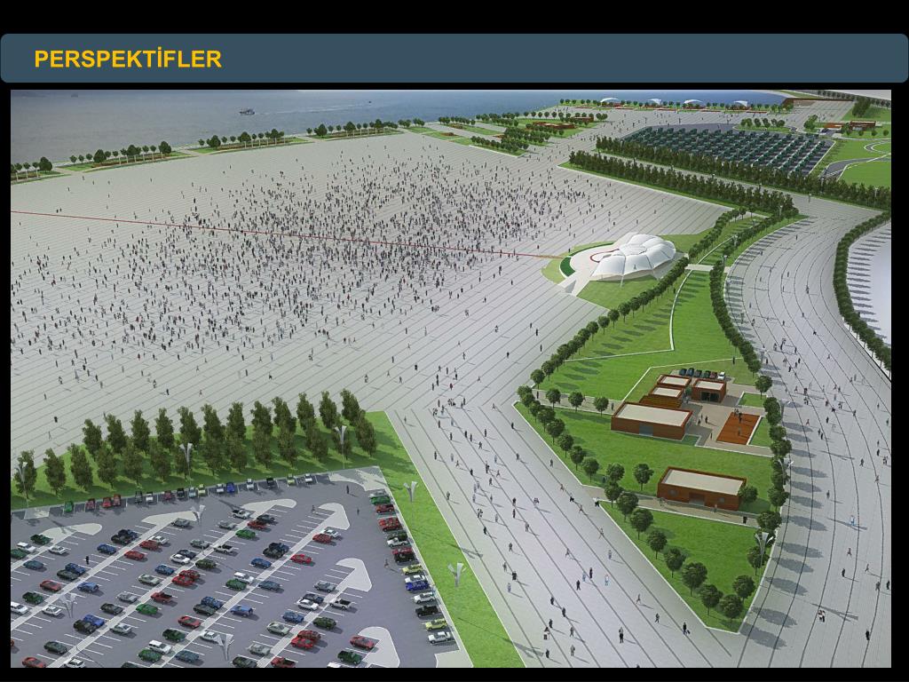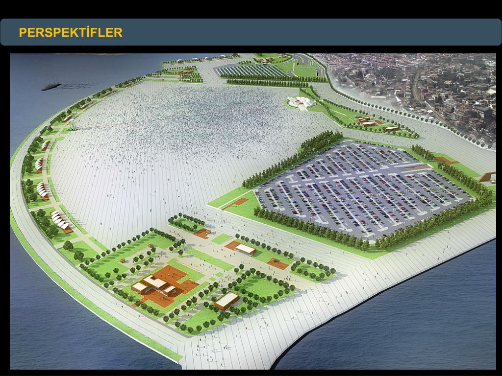 ALAN BÜYÜKLÜKLERİ Alan Büyüklükleri Toplam Alan :715.700 m² Mevcut Dolgu Alanı :137.700 m² İlave Dolgu Alanı :578.000 m² İHTİYAÇ PROGRAMI Miting Alanı, - Sahne Alanı, - Sert Zemin, - Ağaçlık Alan, - Ahşap Zemin ve Güverte, - İdari Tesis, - Sosyal Tesis, - Sağlık Tesisi, - Güvenlik Birimi, - Büfe Birimi, - Kafeterya Birimi, - Restoran • Mimari Birim Büyüklükleri • İdari Tesis :2 X 270 m² • Sağlık Tesisi :2 X 225 m² • Restoran&Kafe :3 X 520 m² • Kafe :1 X 200 m² • WC :4 X 210 m² • Güvenlik :3 X 72 m² • Büfe :11 X 25 m² • Sahne :3.200 m² • Otopark Kapasiteleri • Otopark Alanı :50.000 m² (2200 araçlık) • Otobüs Park Alanı :36.500 m² (760 araçlık)
