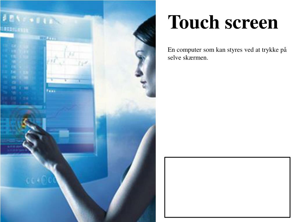 Touch screen En computer som kan styres ved at trykke på selve skærmen.