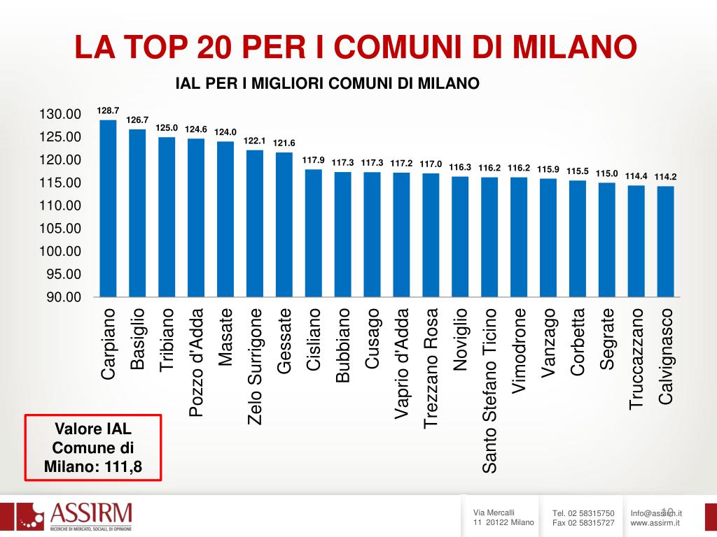 LA TOP 20 PER I COMUNI DI MILANO Valore IAL Comune di Milano: 111,8 10