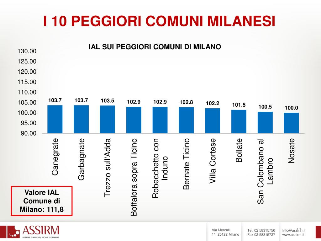 I 10 PEGGIORI COMUNI MILANESI Valore IAL Comune di Milano: 111,8 11