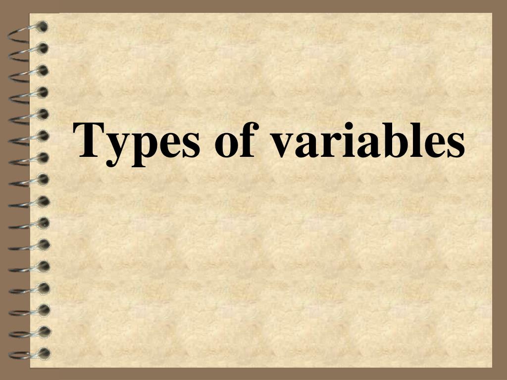 Variable any characteristic whose value may change from one individual to another Is this a variable . . . The number of wrecks per week at the intersection outside?