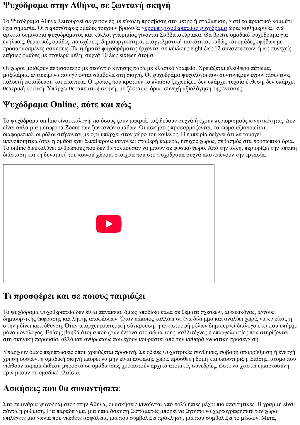 Ψυχόδραμα στην Αθήνα, σε ζωντανή σκηνή Το Ψυχόδραμα Αθήνα λειτουργεί σε γειτονιές με εύκολη πρόσβαση στο μετρό ή στάθμευση, γιατί το πρακτικό κομμάτι έχει σημασία. Οι περισσότερες ομάδες τρέχουν βραδινές γκρουπ ψυχοθεραπείας ψυχόδραμα ώρες καθημερινές, ενώ αρκετά σεμινάρια ψυχοδράματος και κύκλοι γνωριμίας γίνονται Σαββατοκύριακα. Θα βρείτε ομαδικό ψυχόδραμα για ενήλικες, θεματικές ομάδες για σχέσεις, δημιουργικότητα, επαγγελματική ταυτότητα, καθώς και ομάδες εφήβων με προσαρμοσμένες ασκήσεις. Τα τμήματα ψυχοδράματος έρχονται σε κύκλους eight έως 12 συναντήσεων, ή ως συνεχείς ετήσιες ομάδες με σταθερά μέλη, συχνά 10 έως sixteen άτομα. Οι χώροι μοιάζουν περισσότερο με στούντιο κίνησης παρά με κλασικό γραφείο. Χρειάζεται ελεύθερο πάτωμα, μαξιλάρια, αντικείμενα που γίνονται σύμβολα στη σκηνή. Οι ψυχοδράμα ψυχολόγοι που συντονίζουν έχουν πίσω τους πολυετή εκπαίδευση και εποπτεία. Ο τρόπος που κρατούν το πλαίσιο ξεχωρίζει: δεν υπάρχει τυχαία έκθεση, δεν υπάρχει θεατρική κριτική. Υπάρχει θεραπευτική σκηνή, με ζέσταμα, όρια, συνεχή αξιολόγηση της έντασης. Ψυχόδραμα Online, πότε και πώς Το ψυχόδραμα on line είναι επιλογή για όσους ζουν μακριά, ταξιδεύουν συχνά ή έχουν περιορισμούς κινητικότητας. Δεν είναι απλά μια μεταφορά Zoom των ζωντανών ομάδων. Οι ασκήσεις προσαρμόζονται, το σώμα αξιοποιείται διαφορετικά, οι ρόλοι στήνονται με ό,τι υπάρχει στον χώρο του καθενός. Η εμπειρία δείχνει ότι λειτουργεί ικανοποιητικά όταν η ομάδα έχει ξεκάθαρους κανόνες: σταθερή κάμερα, ήσυχος χώρος, σεβασμός στα προσωπικά όρια. Το online διευκολύνει ανθρώπους που δεν θα τολμούσαν να μπουν σε φυσικό χώρο. Από την άλλη, περιορίζει την απτική διάσταση και τη δυναμική του κοινού χώρου, στοιχεία που στο ψυχόδραμα συχνά απογειώνουν την εργασία. Τι προσφέρει και σε ποιους ταιριάζει Το ψυχόδραμα ψυχοθεραπεία δεν είναι πανάκεια, όμως αποδίδει καλά σε θέματα σχέσεων, αυτοεικόνας, άγχους, δημιουργικής έκφρασης και λήψης αποφάσεων. Όταν κάποιος κολλάει σε ένα δίλημμα και αναλύει χωρίς να κινείται, η σκηνή δίνει κατεύθυνση. Όταν υπάρχει εσωτερική σύγκρουση, η αντιστροφή ρόλων δημιουργεί διάλογο εκεί που υπήρχε μόνο μονόλογος. Επίσης βοηθά άτομα που ζουν έντονα στο σώμα τους, καλλιτέχνες ή επαγγελματίες που στηρίζονται στη σκηνική παρουσία, αλλά και ανθρώπους που έχουν κουραστεί από την καθαρά γνωστική προσέγγιση. Υπάρχουν όμως περιπτώσεις όπου χρειάζεται προσοχή. Σε οξείες ψυχιατρικές συνθήκες, σοβαρή απορρύθμιση ή ενεργή χρήση ουσιών, η ομαδική σκηνή μπορεί να μην είναι ασφαλής χωρίς πρόσθετη δομή και υποστήριξη. Επίσης, άτομα που νιώθουν ακραία έκθεση μπροστά σε ομάδα ίσως χρειαστούν αρχικά ατομικές συνεδρίες, ώστε να χτιστεί εμπιστοσύνη πριν μπουν σε ομαδικό πλαίσιο. Ασκήσεις που θα συναντήσετε Στα σεμινάρια ψυχοδράματος στην Αθήνα, οι ασκήσεις κινούνται από πολύ ήπιες μέχρι πιο απαιτητικές. Η γραμμή είναι πάντα η ρύθμιση. Για παράδειγμα, μια ήπια άσκηση ζεστάματος μπορεί να ζητήσει να χαρτογραφήσετε τον χώρο: επιλέγετε μια γωνιά που νιώθετε ασφάλεια, μια που συμβολίζει πρόκληση, μια που συμβολίζει το μέλλον. Μετά,