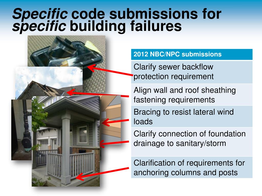 Building/Plumbing Codes in Canada • National level: Model codes • Provincial level: Adopt model codes, slight modification • Local/municipal level: Provincial code interpretation and implementation