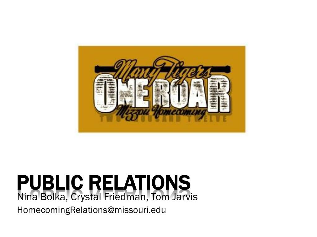 Public relations Nina Bolka, Crystal Friedman, Tom Jarvis HomecomingRelations@missouri.edu