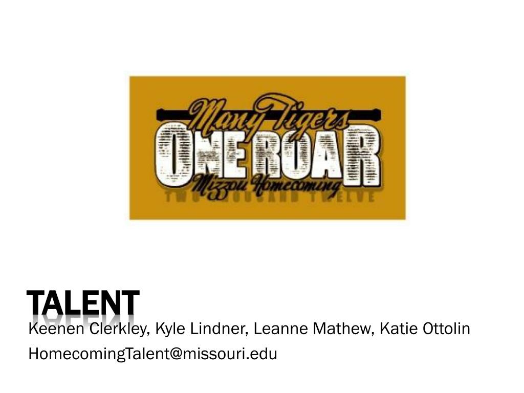 talent KeenenClerkley, Kyle Lindner, Leanne Mathew, Katie Ottolin HomecomingTalent@missouri.edu