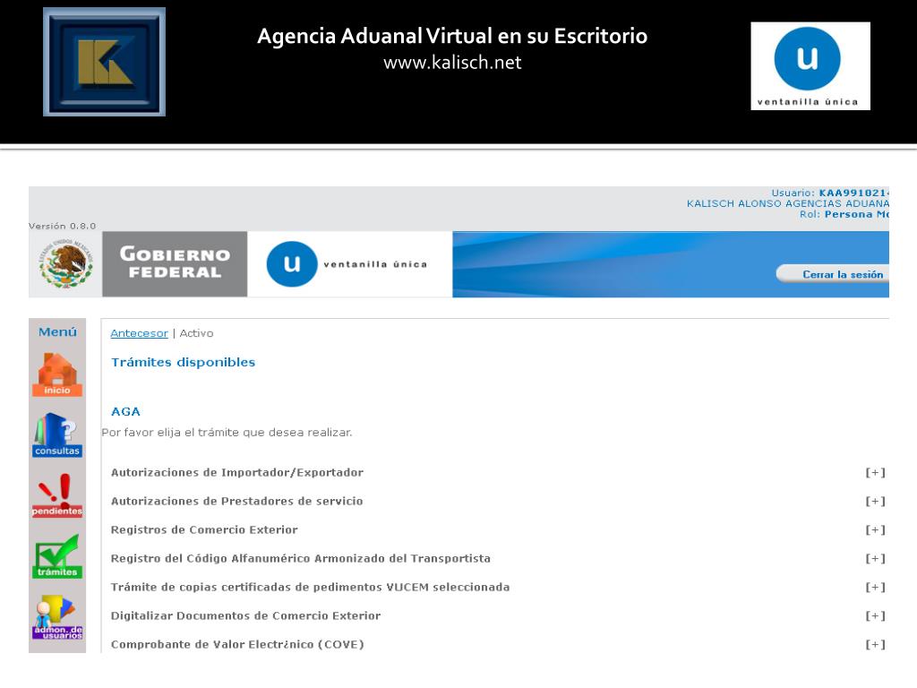 Acceso a la Ventanilla Única www.kalisch.net Agencia Aduanal Virtual en su Escritorio