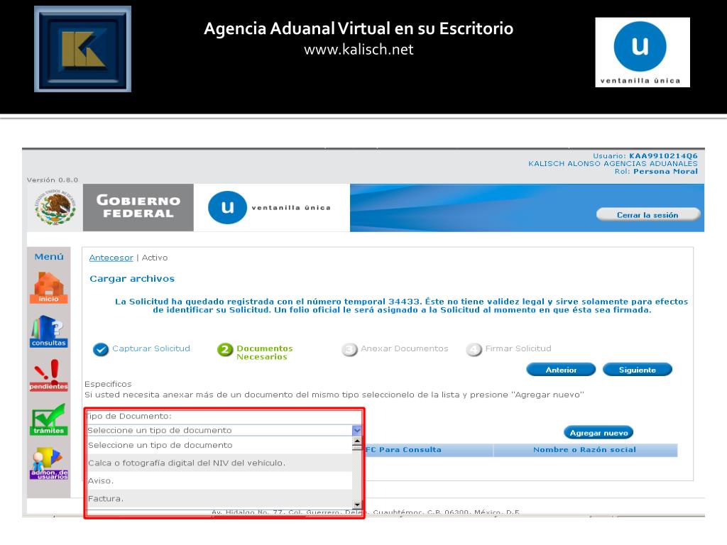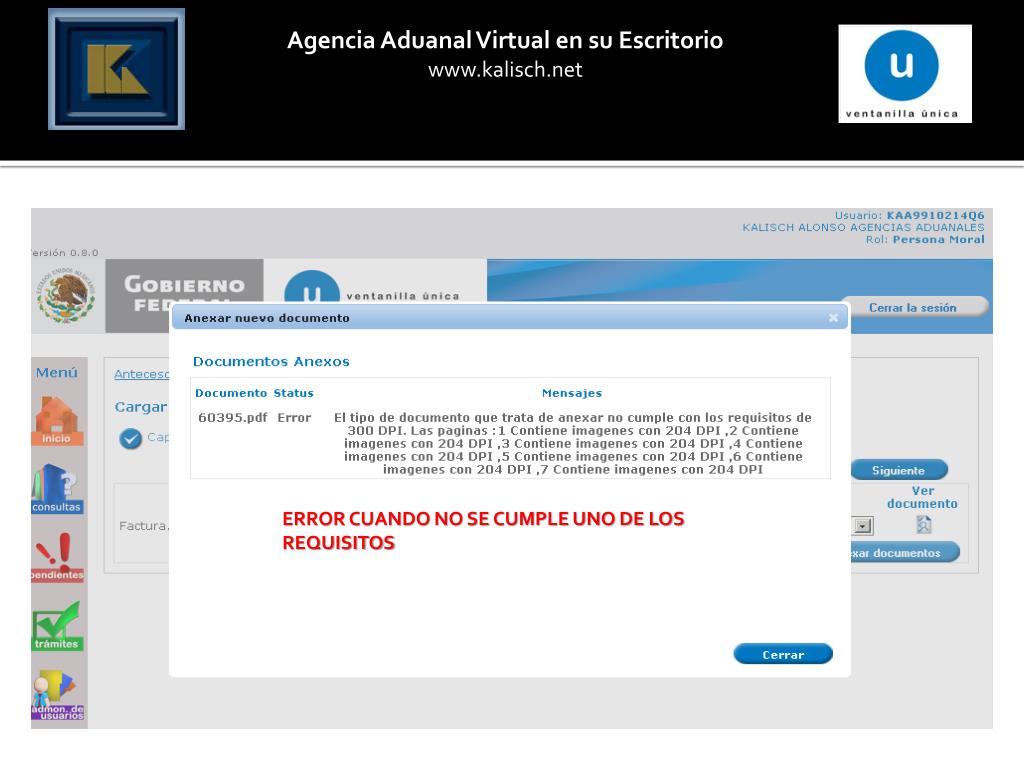 www.kalisch.net Agencia Aduanal Virtual en su Escritorio ERROR CUANDO NO SE CUMPLE UNO DE LOS REQUISITOS