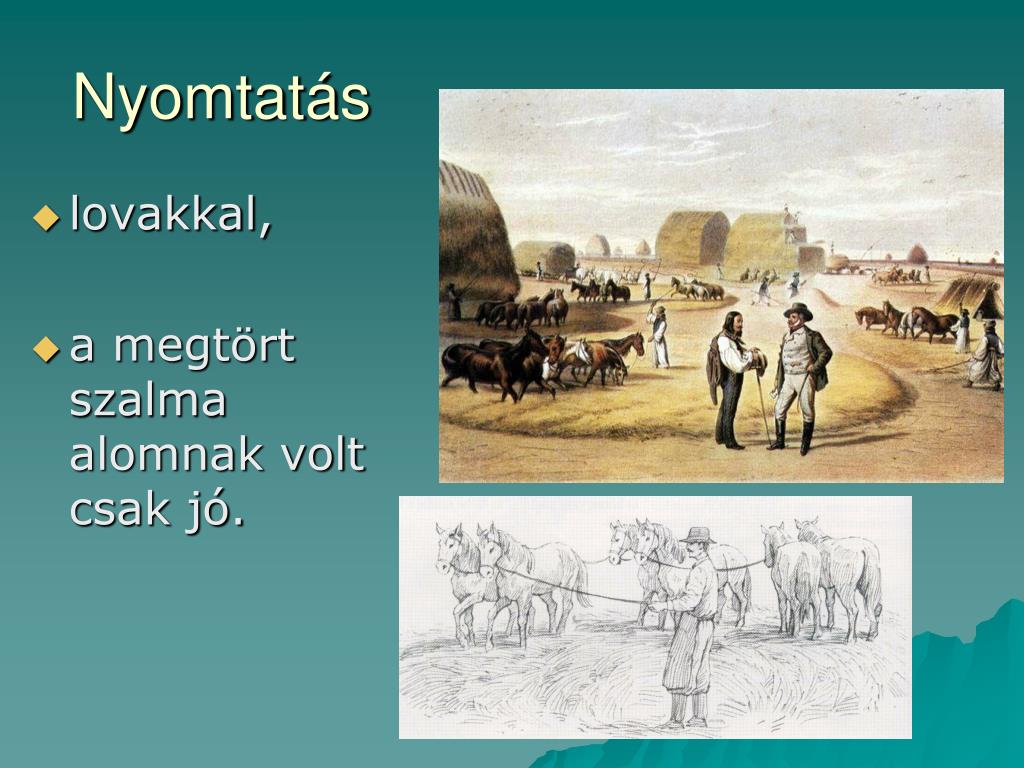 Nyomtatás • lovakkal, • a megtört szalma alomnak volt csak jó.