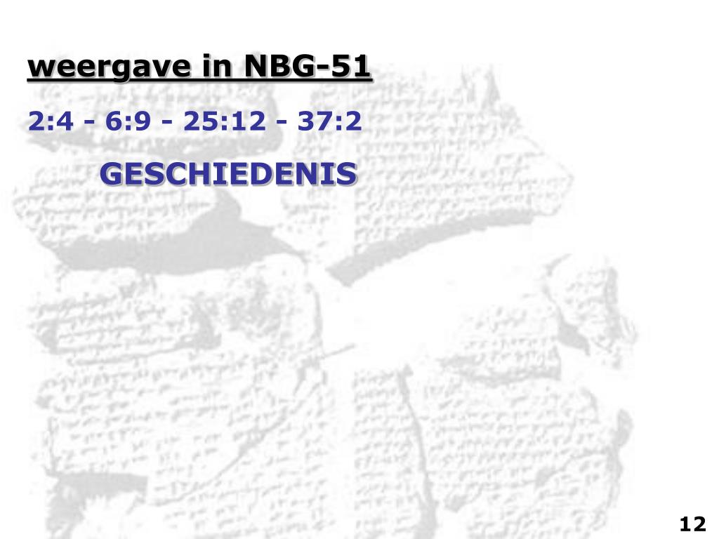 weergave in NBG-51 2:4 - 6:9 - 25:12 - 37:2 GESCHIEDENIS 10:1 - 11:10 - 11:27 - 25:12 - 36:1 - 36:9 NAKOMELINGEN 13