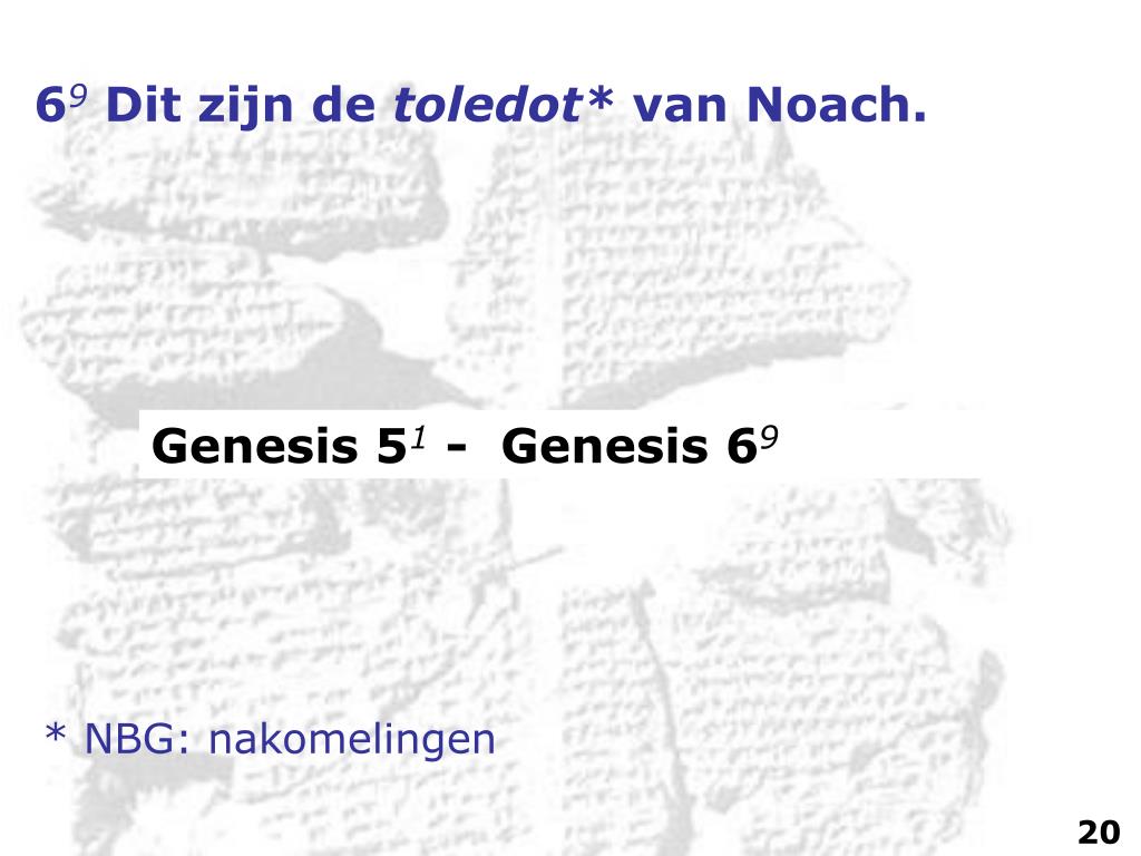 69 Dit zijn de toledot* van Noach. Genesis 51 - Genesis 69 * NBG: nakomelingen 20