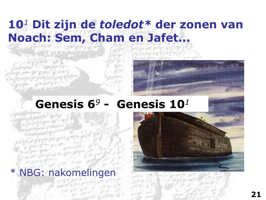 101 Dit zijn de toledot* der zonen van Noach: Sem, Cham en Jafet... Genesis 69 - Genesis 101 * NBG: nakomelingen 21