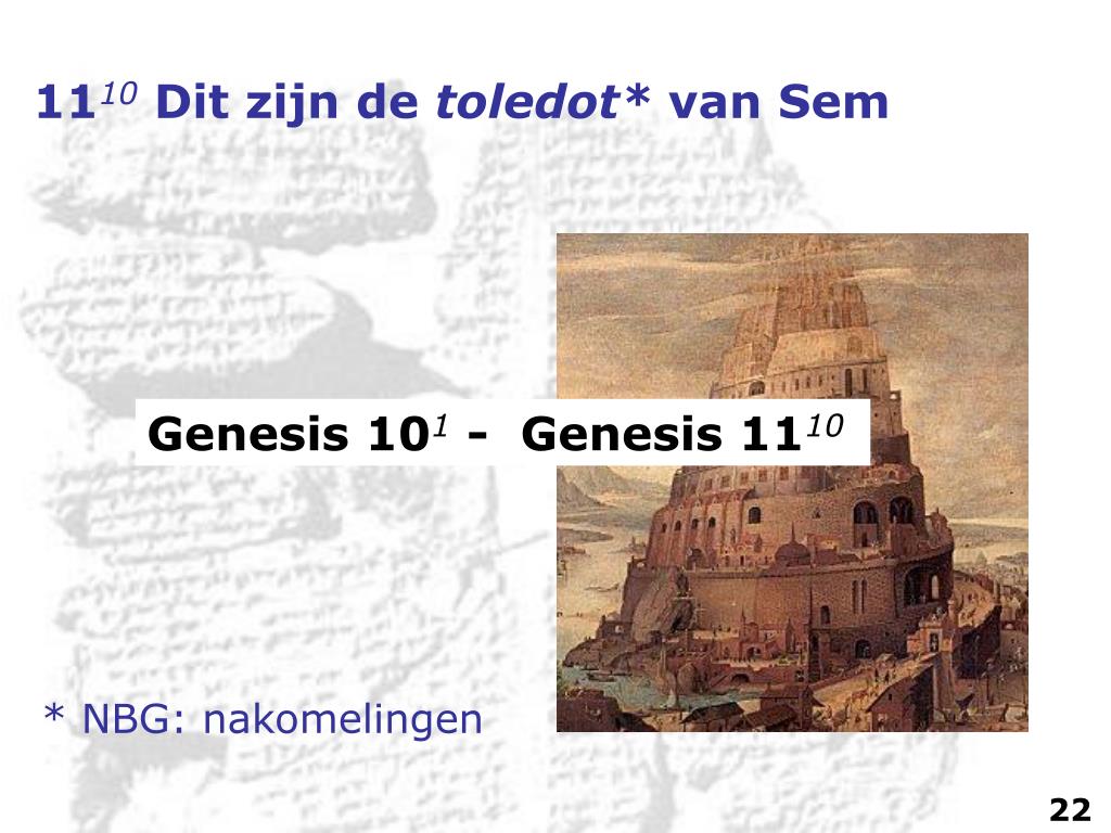 1110 Dit zijn de toledot* van Sem Genesis 101 - Genesis 1110 * NBG: nakomelingen 22