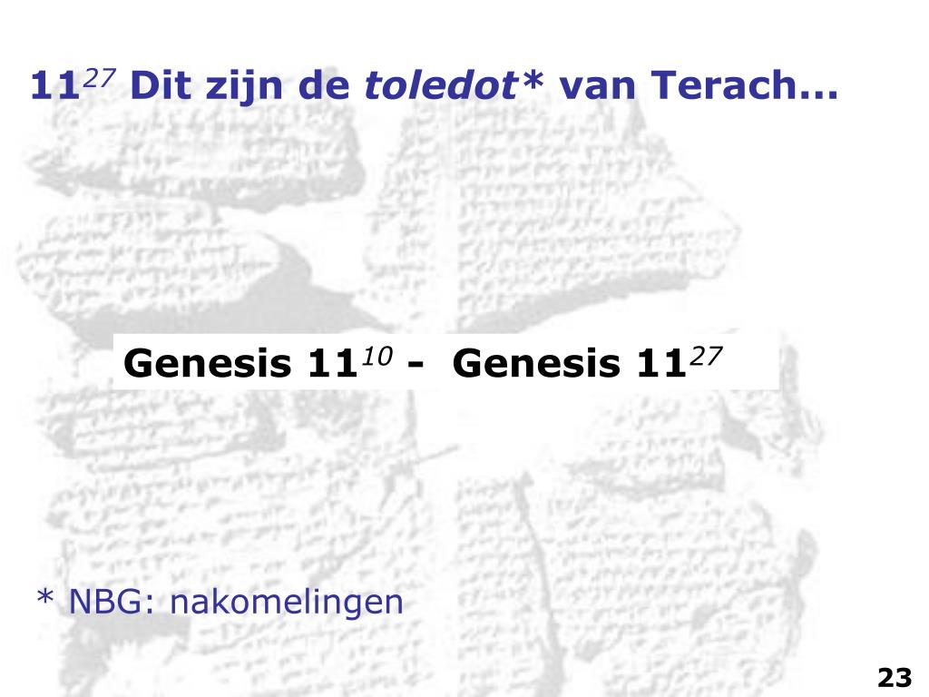 1127 Dit zijn de toledot* van Terach... Genesis 1110 - Genesis 1127 * NBG: nakomelingen 23